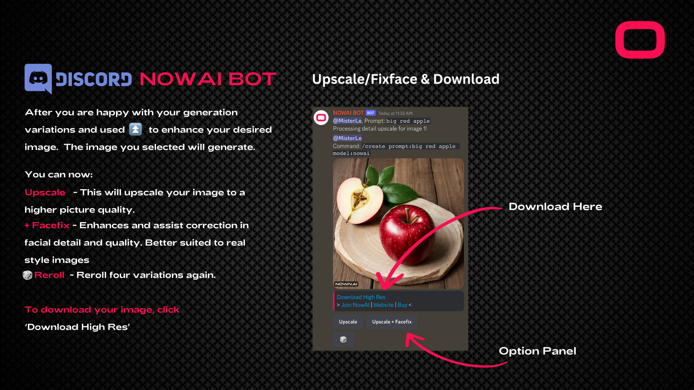 <figure><img src="https://content.gitbook.com/content/nsdvwnOzIBb65D90rMbG/blobs/hepB0Tz91AIG0DMV8F73/5.%20discord%20upscale.PNG" alt=""><figcaption><p>Upscaling layout (click to zoom)</p></figcaption></figure>